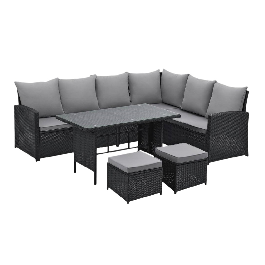 Canapé d'angle en résine tissée pour espace extérieur avec coussins - 200 x 200 x 70