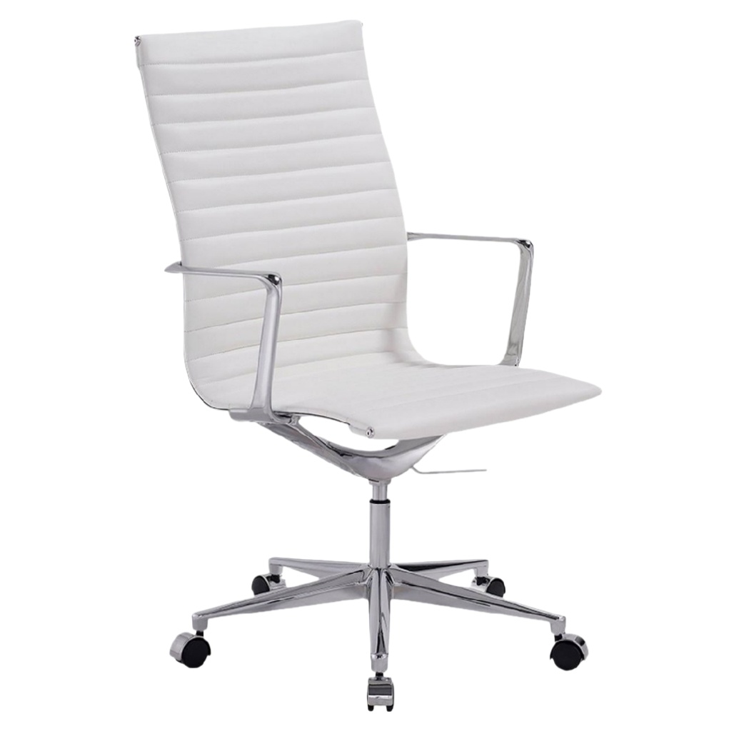 Chaise de bureau pivotante en simili cuir blanc - Utilisation en environnement de travail ou à domicile - Structure en métal - Dimensions non spécifiées, veuillez fournir des informations supplémentaires pour l'évaluation des tailles.